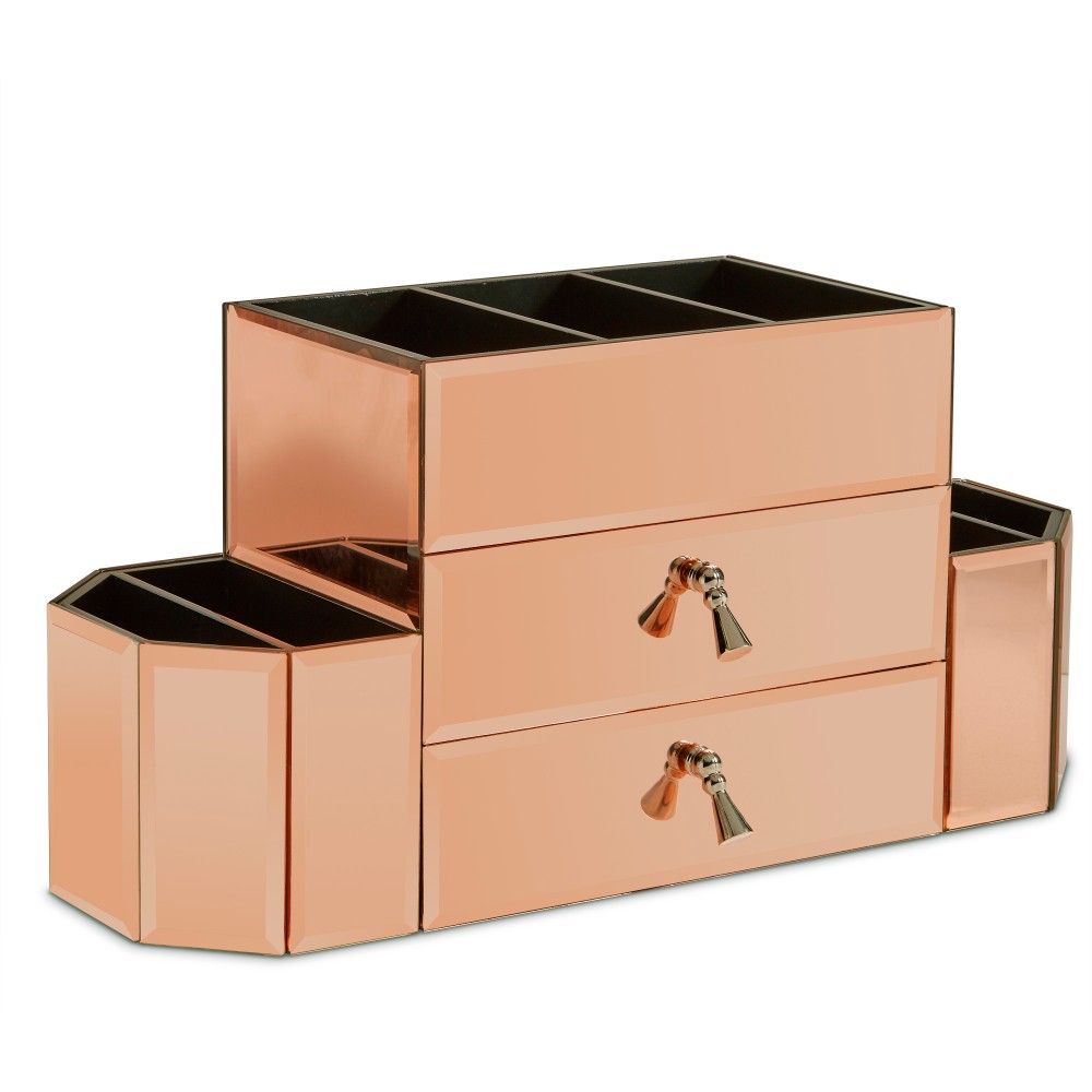 Beautify Large Mirrored Rose Gold Cosmetic Makeup Organizer 3