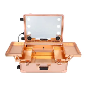 Shenzhen Factory Travel Makeup Train Case Rose Gold Makeup Artist