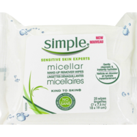 Simple makeup wipes. Simple skincare products care for you day after day to keep your skin clean fresh perfectly hydrated free from any sign of sensitivity. Micellar wipes cleanse your face easily remove impurities and tough makeup with just one wipe. From eyelash curlers to kabuki brushes there are so many makeup tools on the market that it can be tough. Simple cleansing facial wipes are merciless on make up even waterproof mascara but gentle on skin.