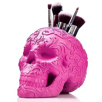 Skull Makeup Brush Holder Pink Wicked Vanity Beauty