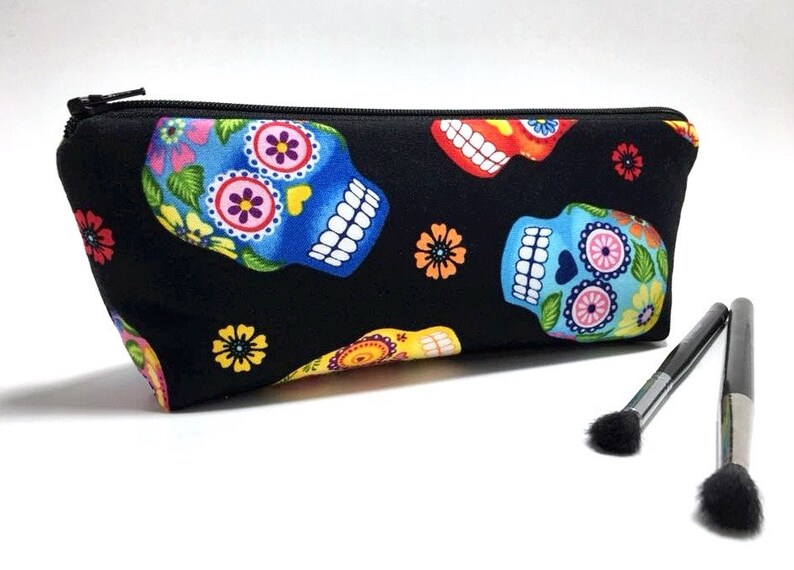 Makeup Brush Bag Gothic Makeup Brush Case Sugar Skull Zipper Etsy