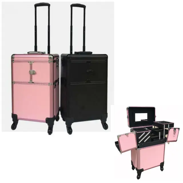 Aluminum Makeup Train Case With Inner Tray Small Mirror Trolley
