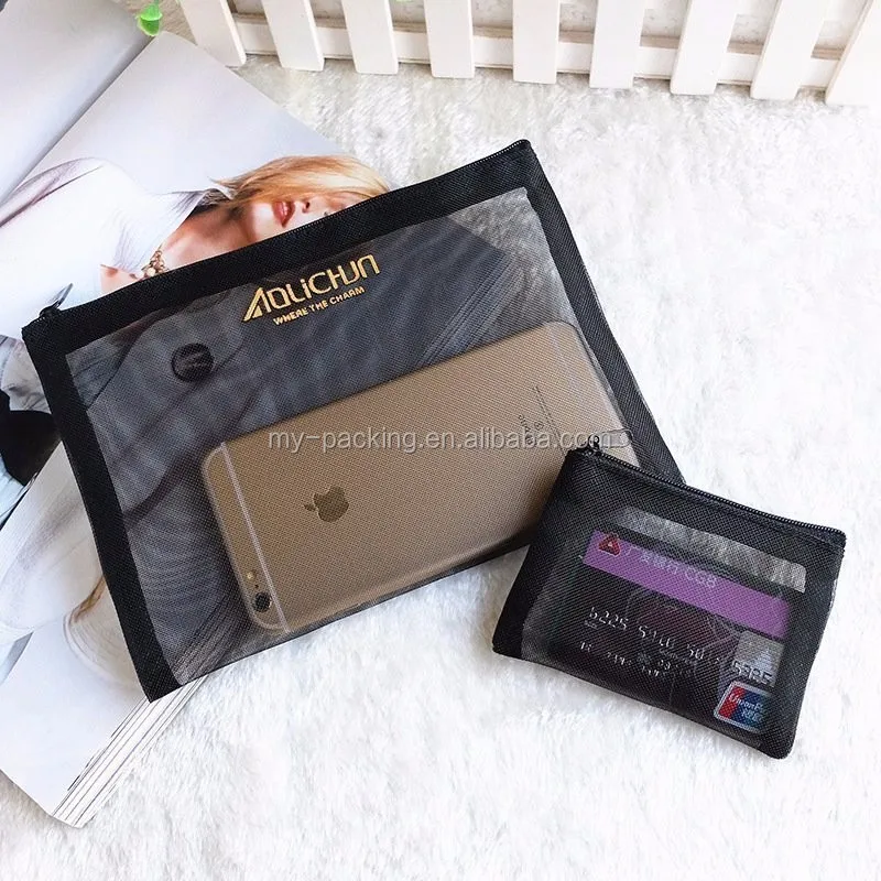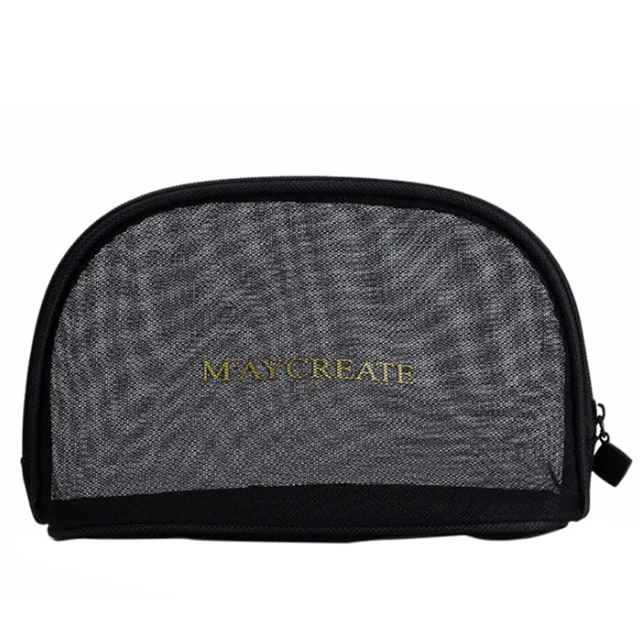 Mesh Zipper Makeup Bag Mesh Cosmetic Bag Black Nylon Mesh Zippered