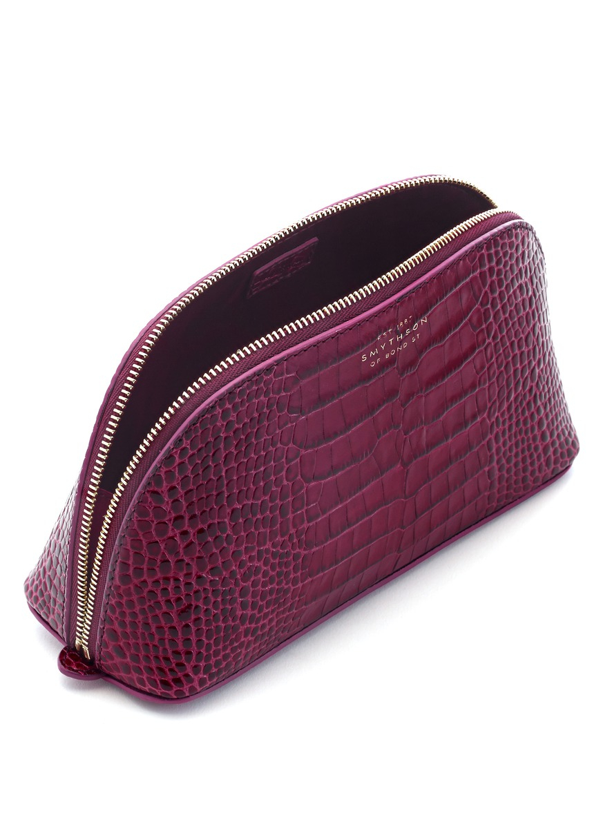Smythson Mara Croc Embossed Leather Cosmetics Case Dark Berry In
