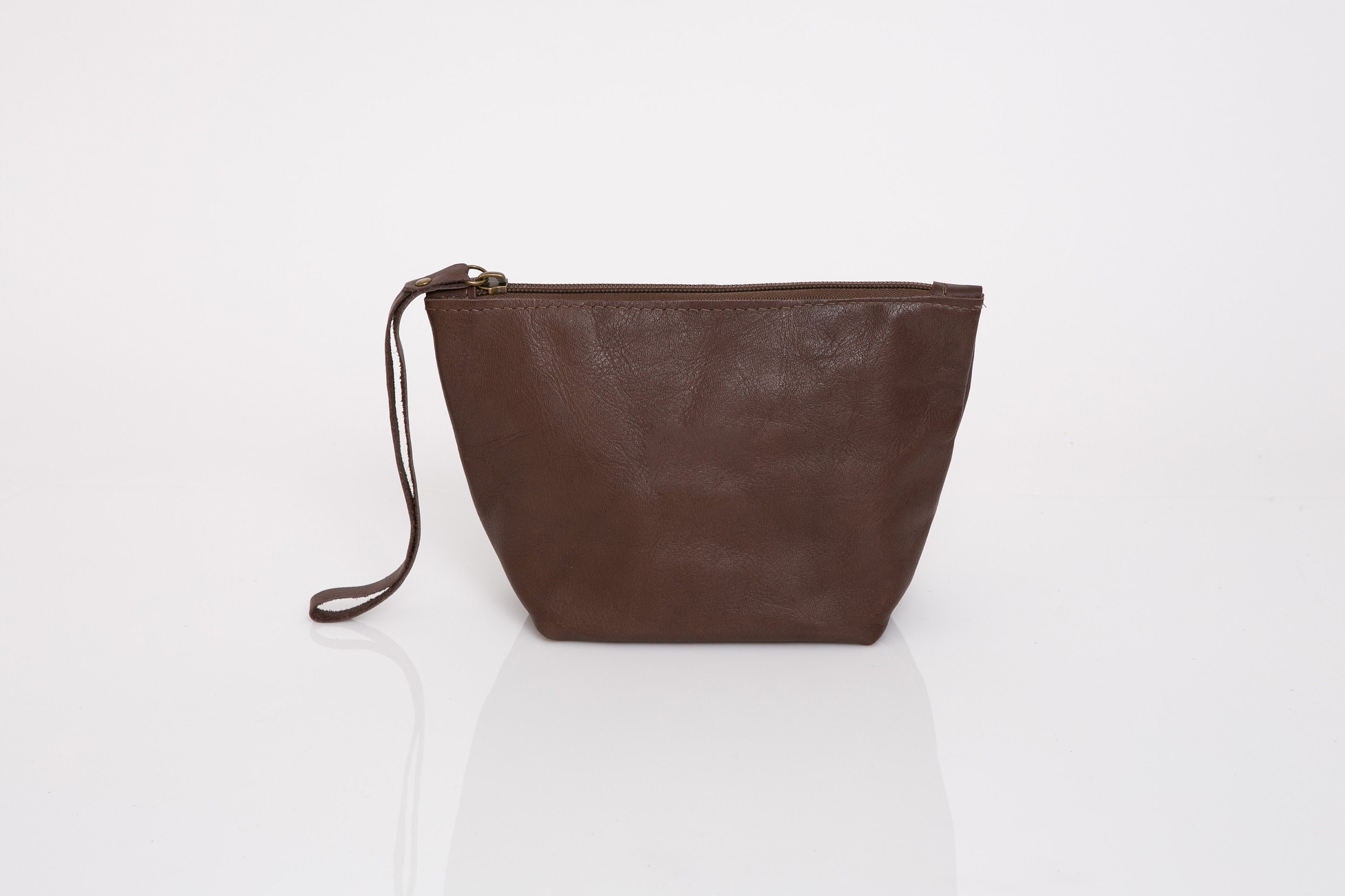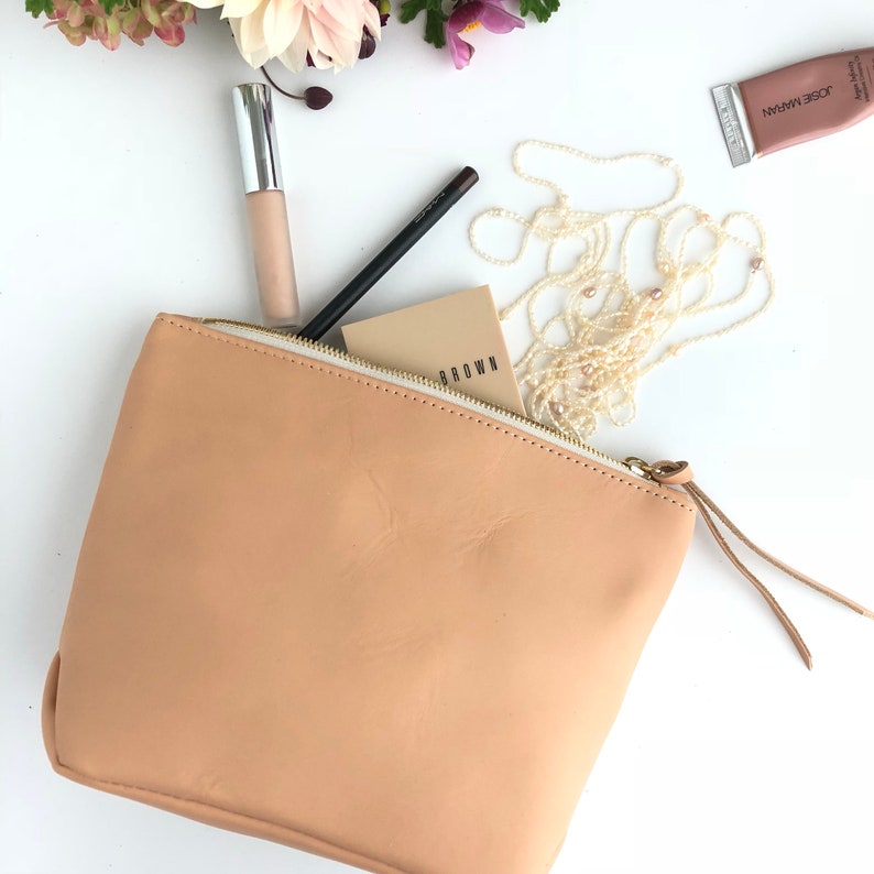 Makeup Bag Personalized Makeup Bag Brown Leather Pouch Etsy