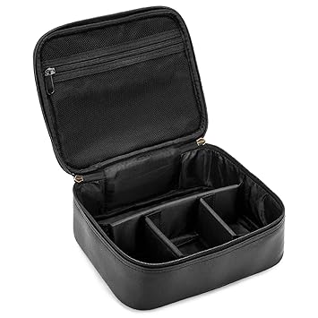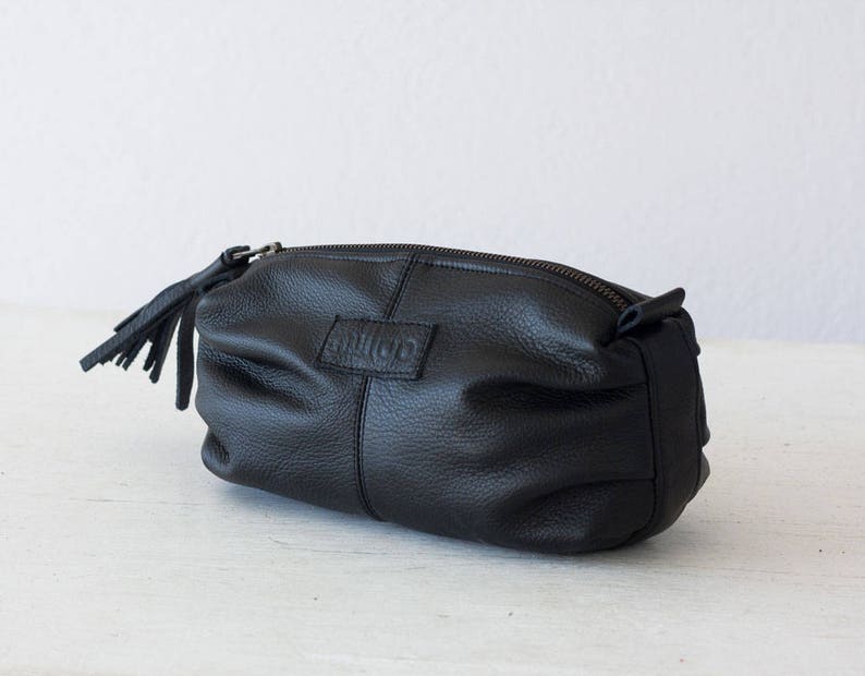Black Leather Makeup Bag Cosmetic Case Vanity Storage Etsy