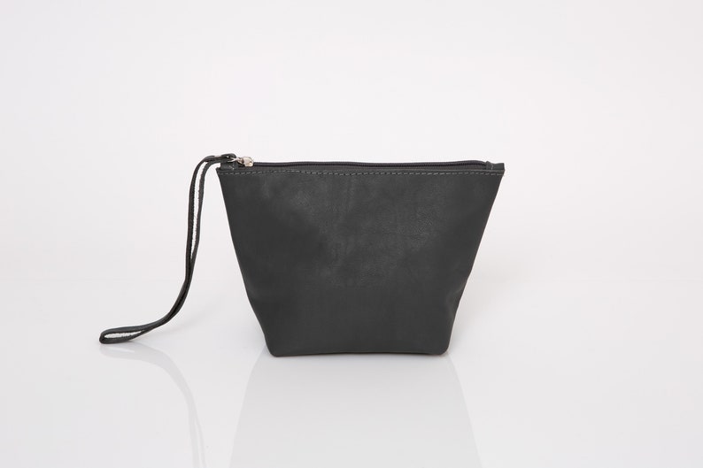 Personalized Makeup Bag Leather Makeup Bag Gray Leather Etsy