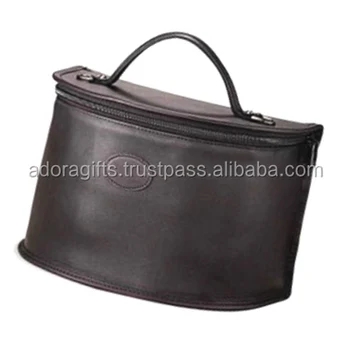 Dark Brown Leather Makeup Case Vanity Storage Case Cosmetic Bag