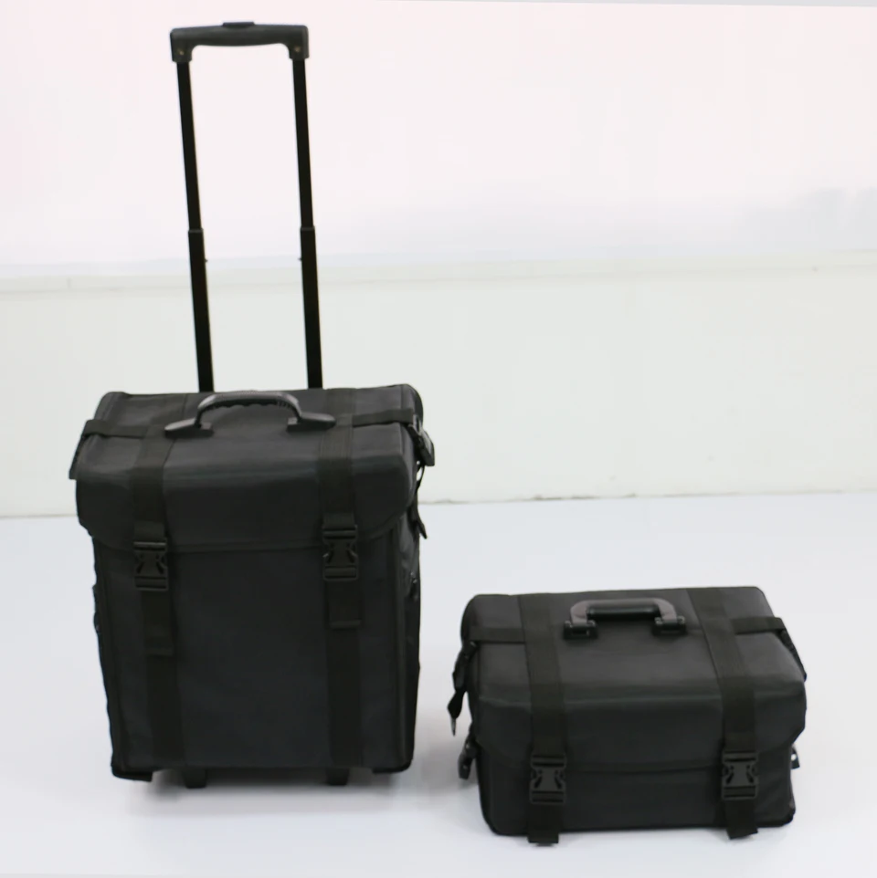 Rolling Makeup Case Trolley 2 In 1 Travel Cosmetic Train Cases On Wheels Nylon Black Bags For Professional Make Up Artist Cosmetics Storage