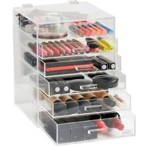 Put your beauty essentials on display. Sorbus acrylic cosmetic makeup and jewelry storage case display great for lipsticks liners nail polishes brushes and much more bathroom space saving stylish acrylic case christmas gift. Buy sorbus acrylic cosmetic makeup and jewelry storage case display spacious design for bathroom dresser vanity and countertop 4 large 2 small drawers clear. A great gift idea for any beauty blogger makeup artist or product junkie.