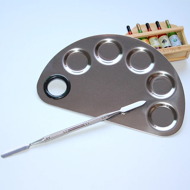 Stainless Steel Makeup Mixing Palette With Makeup Spatula Gd281
