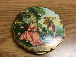 Vtg Stratton Goldtone Compact Makeup Mirror Man Serenading Ladies