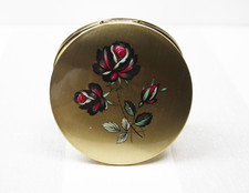 Vintage Stratton England Red Roses Enamel Compact Make Up Mirror