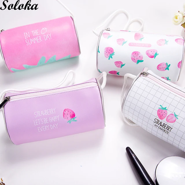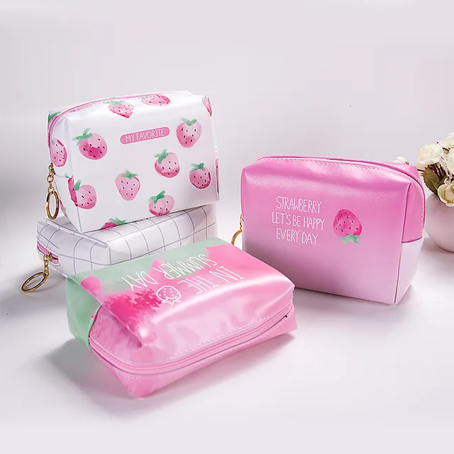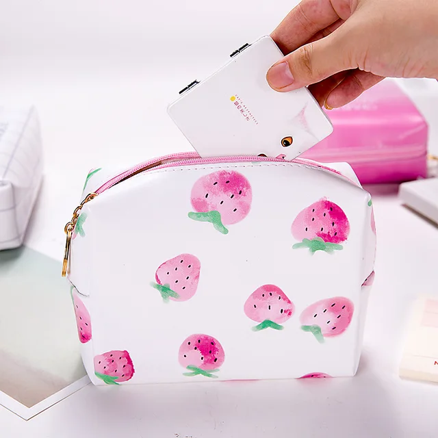 Korean Women Travel Cosmetic Bag Fruit Strawberry Pu Makeup Bag