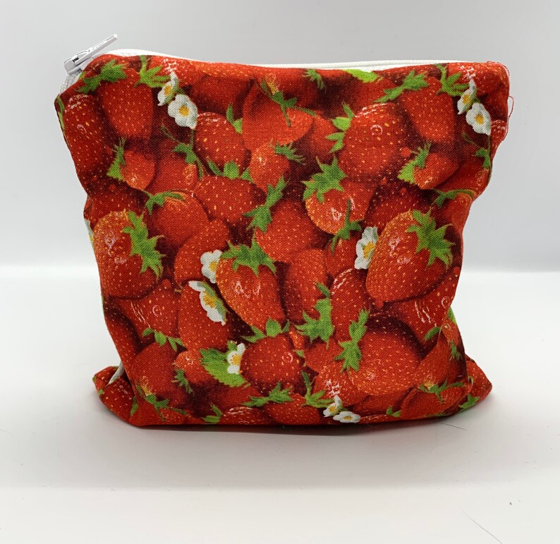 Medium Strawberry Pattern Reusable Food Bag Snack Bag Makeup Etsy