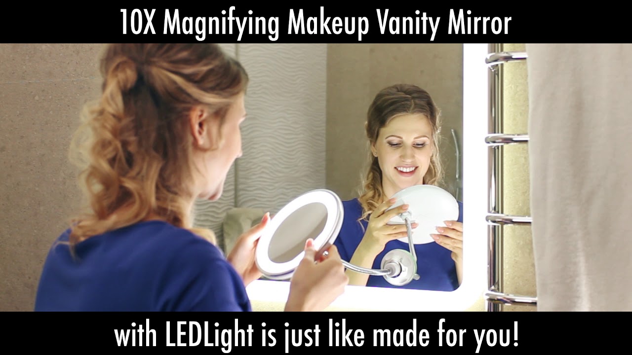 10x Magnifying Makeup Mirror With Bright Led Light Adjustable Gooseneck Suction Cup