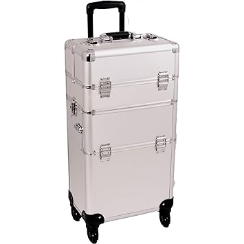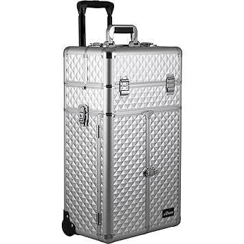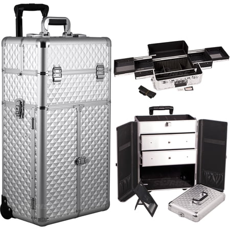 Sunrise Sunrise Makeup Case On Wheels 4 In 1 Professional Organizer I3366 3 Stackable Trays And 2 Drawers Locking With Mirror Silver Dot From