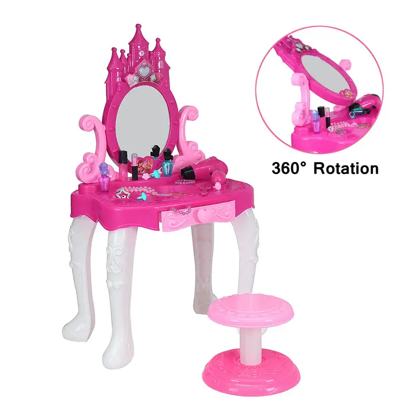 Kids Vanity Table Pretend Play Set Cosmetic Makeup Hair Toddler Girl