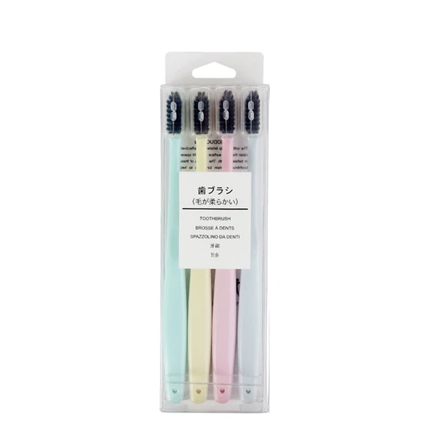 4pcs Set Charcoal Bamboo Tooth Brush For Family Kit Soft Teeth Brush