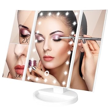 Amazon Com Lighted Makeup Mirror Tri Fold Vanity Mirror With 3x