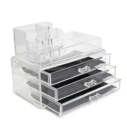 Wds Cosmetic Jewellery Makeup Storage Box Kit With 3 Drawers Clear