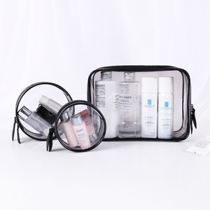 This essential makeup bag is made to travel with a tsa friendly clear front panel and an easy to clean material.