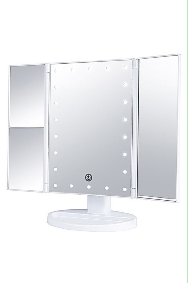 Tri Folding Small Size Led Lighted With Magnification Mirror For