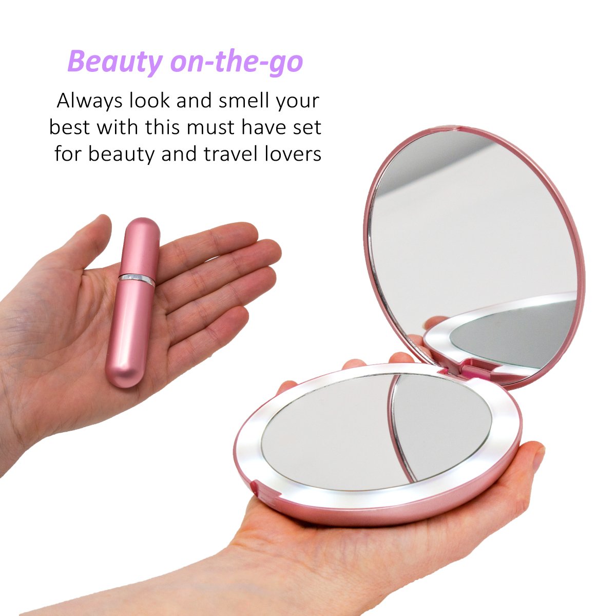 Base Beauty Compact Mirror With Led Lights Pink Travel Size Makeup