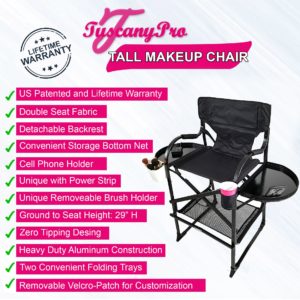 Tuscany pro tall makeup chair wpower strip 29 seat height a bonus brush bucket included. Tuscany pro tall makeup chair 29 seat height. It offers a ten year warranty and it has a sturdy framework so we know its a quality piece of equipment. Tuscany pro makeup chair with side trays cc65ttpro 25.