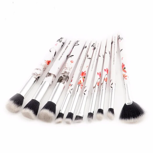 10 Pcs Unique Makeup Brushes Set Chinese Style Ink Painting Handle
