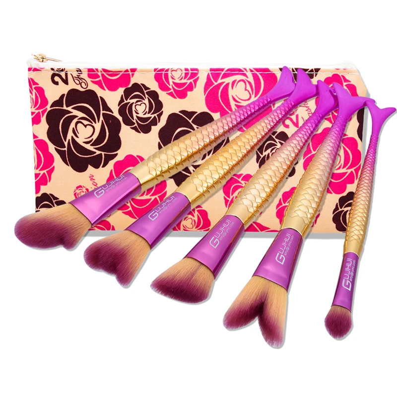 Mermaid Shaped Makeup Brush Set With Big Fish Tail Foundation Po