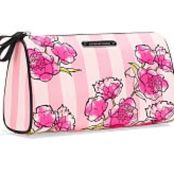 Victoria S Secret Pink Iconic Stripe Floral Travel Makeup Cosmetic