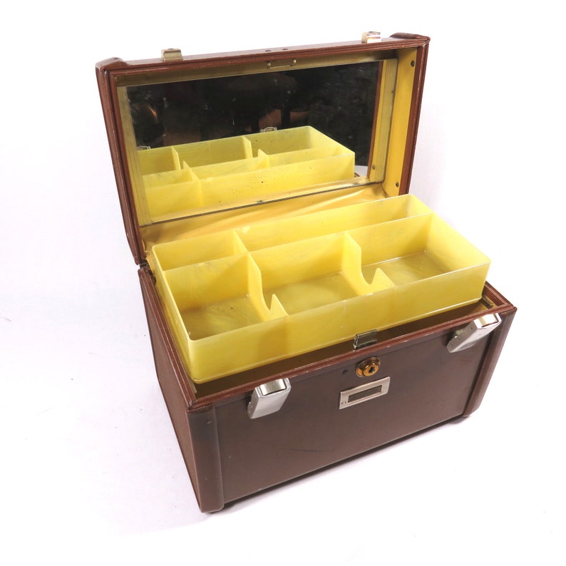 Vintage Suitcase Luggage Makeup Train Case With Mirror Etsy