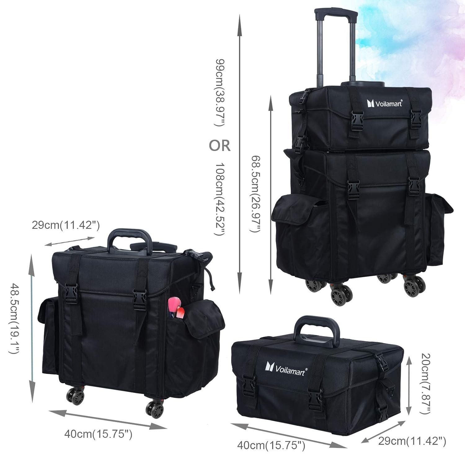 Voilamart Rolling Makeup Case Trolley 2 In 1 Travel Cosmetic Train