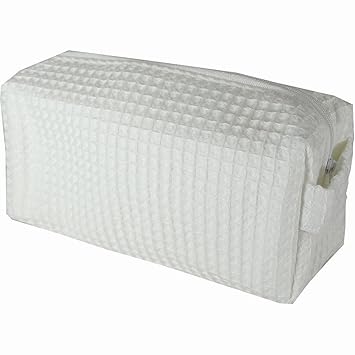 Amazon Com White Waffle Weave Fully Lined Cosmetic Bag Beauty