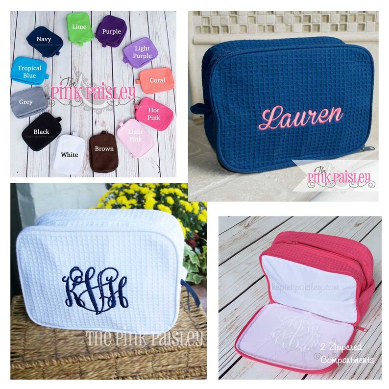 Monogrammed cosmetic bag large personalized waffle weave cosmetic bag monogrammed make up bag waffle weave makeup bag with monogram fourbugsinarug 5 out of 5 stars 5886 1800. 48 out of. New at waffle cosmetic bag small see more like this. Personalized waffle weave cosmetic bag makeup case toiletry case portable travel organizer embroidered with your name or text large turquoise more buying choices 2199 1 new offer.