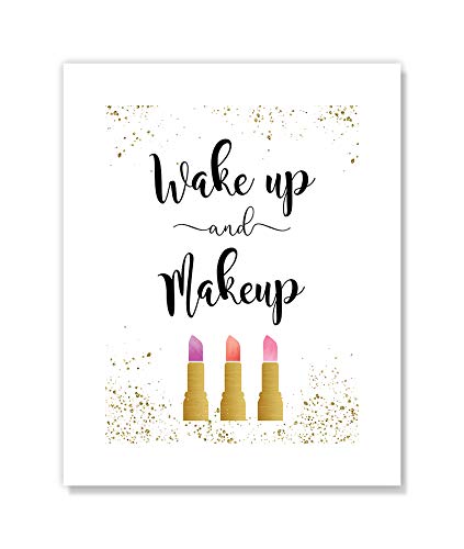 Wake Up And Makeup Girls Room Decor Bathroom Decor Quote Prints Lips