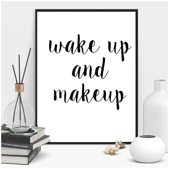 Amazon Com Zn Wake Up And Make Up Quotes Canvas Print Art Wall