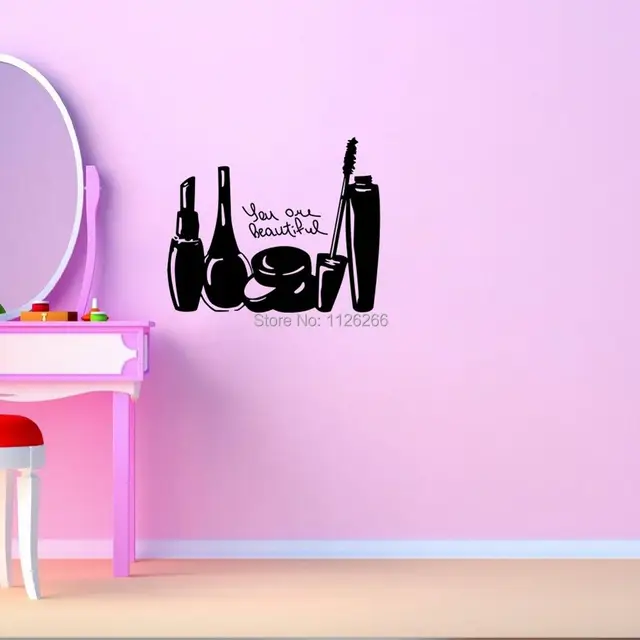 Woman Girl Bedroom Makeup Wall Sticker Cosmetics Beauty Salon Vinyl
