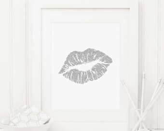 Pink Lips Printable Lip Print Lips Wall Art Kiss Print Glitter Etsy