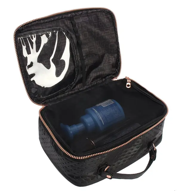 Drq travel makeup bag with mirror multifunction portable toiletry bag large cosmetic make up pouch organizer for women cosmetic duffle weekender 48 out of 5 stars 56 1599 15. A large roomy pvc pocket helps you avoid spills during travel while a twin mesh pocket stores larger dry toiletries. Find the perfect train case makeup bag or clutch to hold your beauty products and let you travel in style. With padded walls this bag protects your cosmetics.