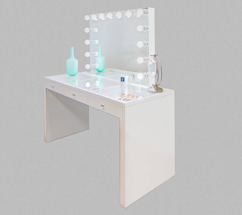Xx Large Lustrous Gloss White Glass Top Fantasy Makeup Vanity Etsy