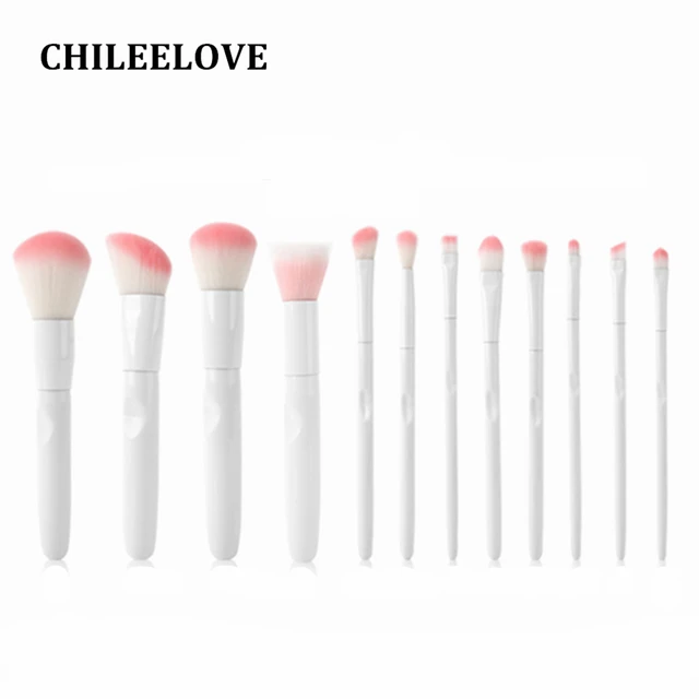 Chileelove 12 Pcs Set New White Handle Pink Hair Makeup Brushes Kits