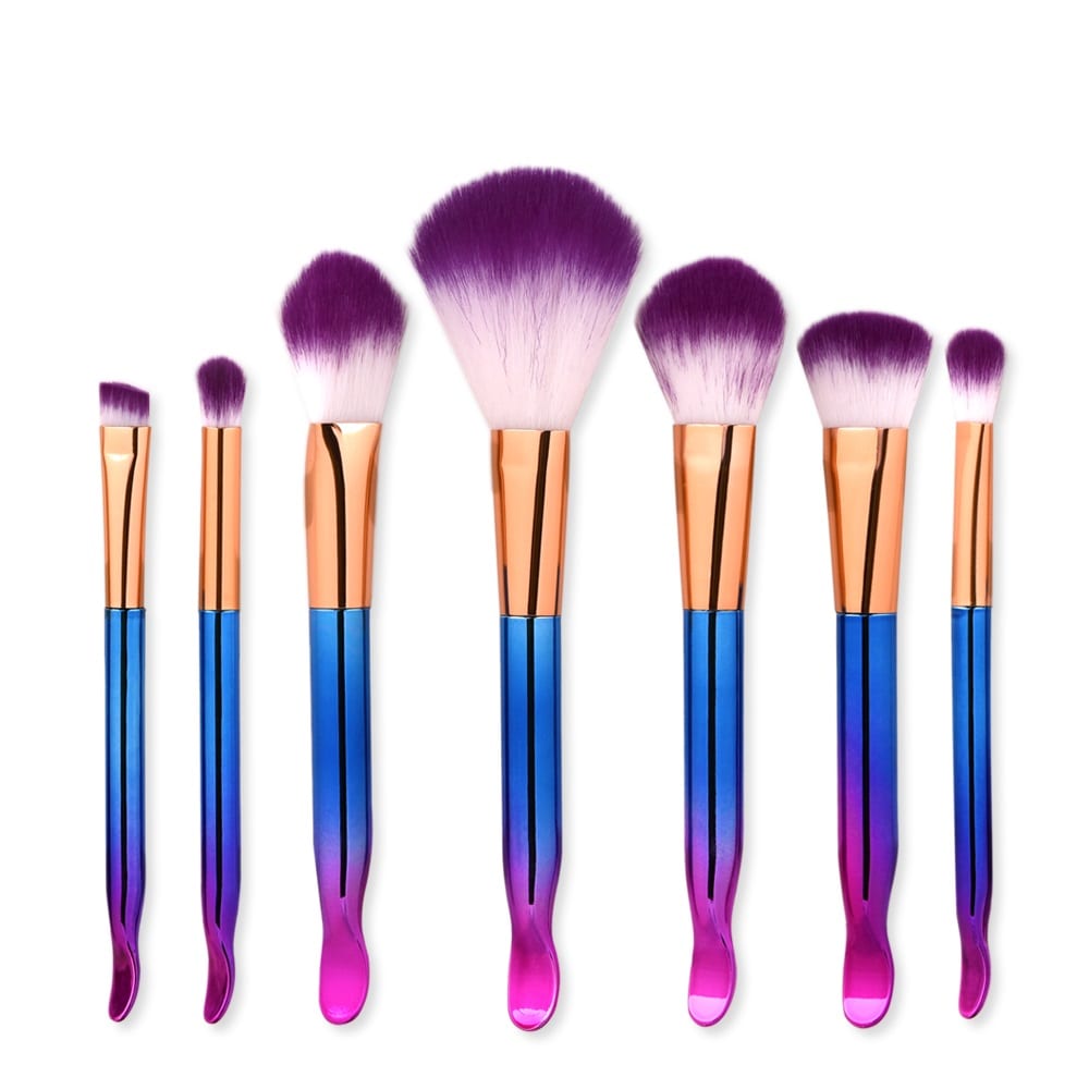 Glowii 7pcs Blue Purple Spoon Handle Purple White Hair Makeup Brush
