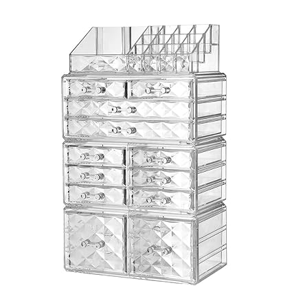 Zhiai Acrylic Jewelry Makeup Drawer Organizer Diamond Pattern Clear Cosmetic Storage Set 8 Small Drawers 2 Large Drawers And 2 Square Drawers
