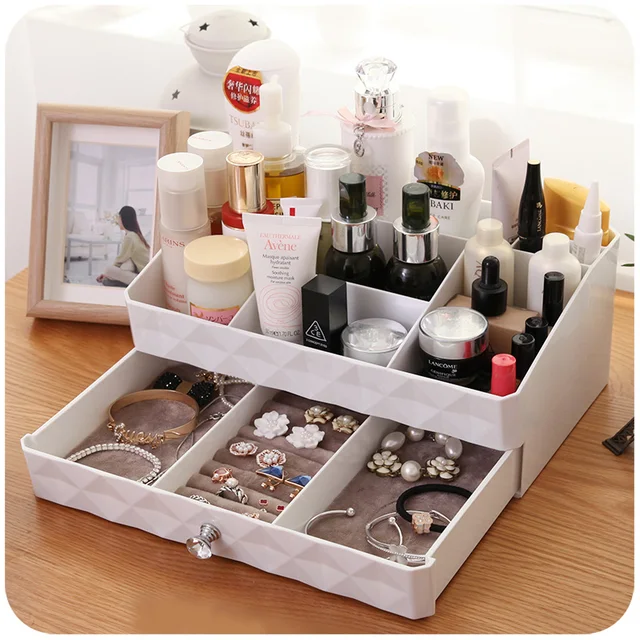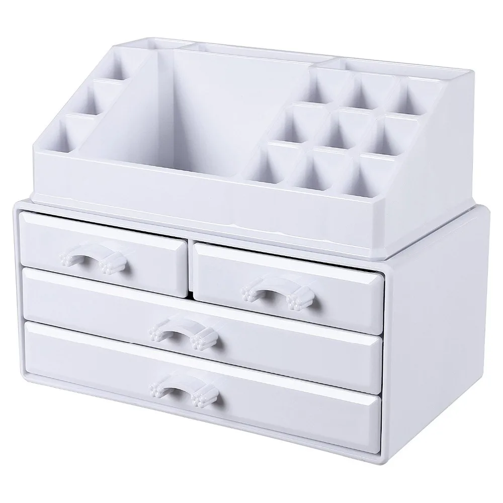Woman Plastic Cosmetic Organizer White Makeup Jewelry Cosmetic