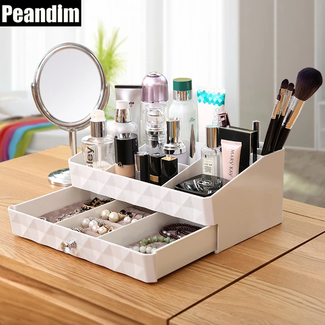 Peandim White Multi Functional Cosmetic Jewelry Storage Box Plastic