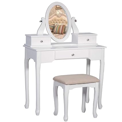 Costway White Vanity Table Jewelry Makeup Desk Bench Dresser