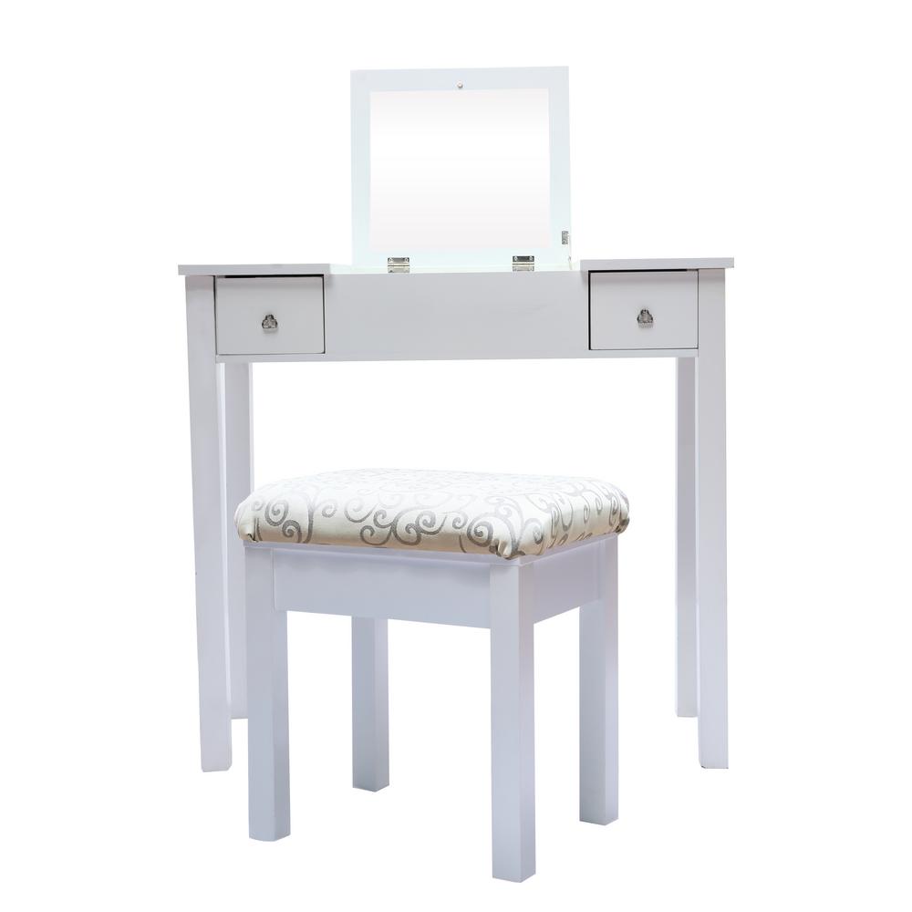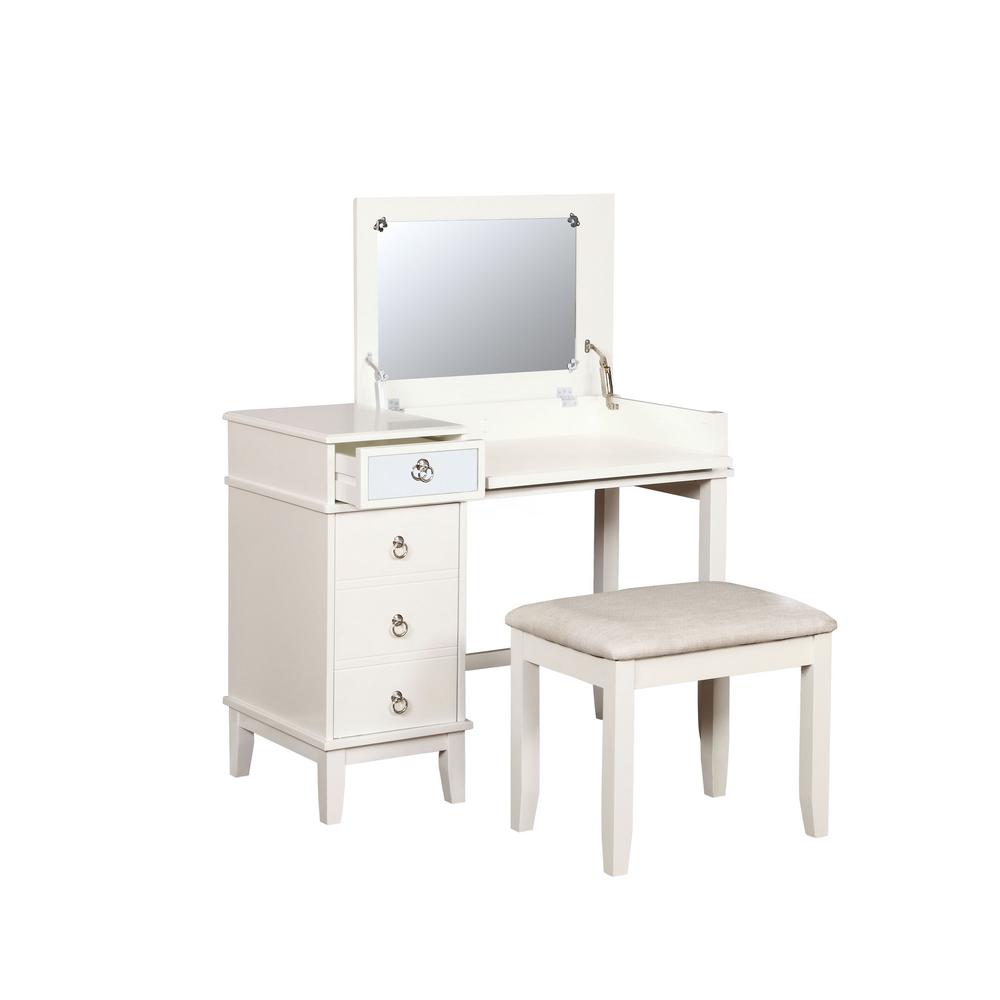Crawford Burke Beatrice 2 Piece White Makeup Vanity Table And