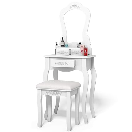 Amazon Com Giantex White Vanity Set With Mirror And Stool Bedroom